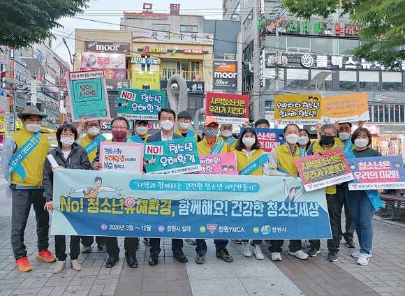 경남 창원시는 청소년의 달을 맞아 22일 성산구 상남동 주변 상업지역을 중심으로 창원YMCA 청소년유해환경감시단, 두산중공업, 대학생 등 20명과 함께 청소년 유해환경 민·관 합동 캠페인을 펼쳤다.