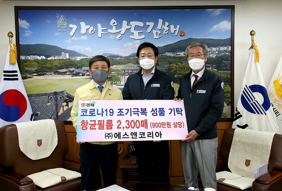 경남 김해시는 관내 보호필름 제조업체인 ㈜에스앤코리아가 생활방역 전환으로 이달 말 개학을 맞는 초등학생들을 위해 책상에 붙이는 항균필름 2300매(900만원 상당)를 기탁했다고 22일 밝혔다.