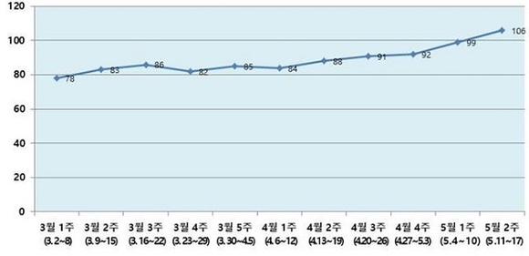 신한카드사 코로나19 관련 소비동향분석 결과에서도 4월 셋째 주 매출은 전주 대비 10.4% 증가했으며, 이태원 클럽발 확진자가 발생한 5월 첫째 주(4~10일)에 잠시 주춤했으나 5월 둘째 주는 전주 대비 7% 상승했다.
