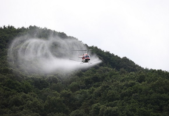 올해는 이날 1차 방제를 시작으로 내달 12일과 26일 총 3회에 걸쳐 오전 6시부터 낮 12시까지 약제를 살포할 계획이지만, 비·안개 등 기상여건과 헬기운영 사정 등에 따라 방제 일정이 변경될 수 있다.
