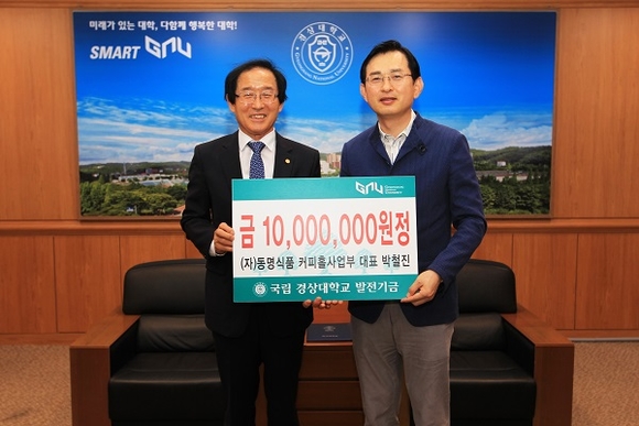 경상대학교는 (자)동명식품 서울지점 커피홀사업부 박철진 대표가 대학발전기금 1000만 원을 출연했다고 밝혔다. 박철진 대표는 경상대학교 법학과 89학번이다.