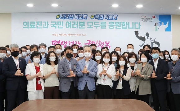 국민건강보험 부산경남지역본부는 8일 오전 코로나19 관련 일선 의료현장에서 헌신 중인 의료진에 대해 감사를 표하기 위해 '덕분에 챌린지' 캠페인에 동참했다.