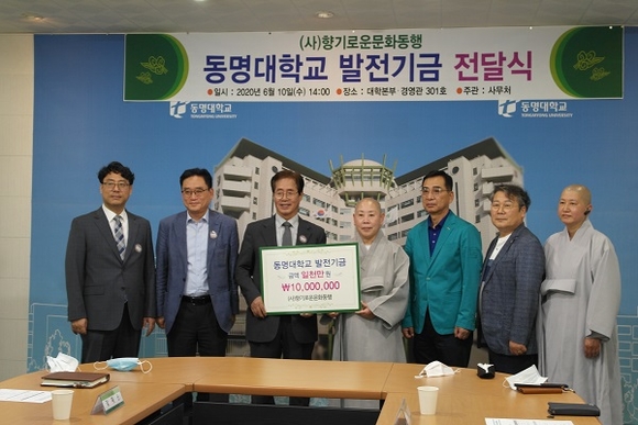 사단법인 향기로운문화동행은 10일 동명대학교 대학본부 경영관(301호)에서 발전기금 1000만원을 기탁했다. 이날 (사)향기로운문화동행에서는 이사장 청량사 주지 보혜스님과 총무 자오스님, 정원기 후원회장, 김현수 사무처장 등이 참석했다.