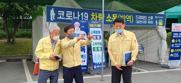 허성곤 김해시장은 17일 오후 관내 코로나19 선별진료소와 재해취약시설을 차례로 방문해 선별진료소 근무자들의 노고를 치하하고 2020 국가안전대진단 현장점검을 했다.