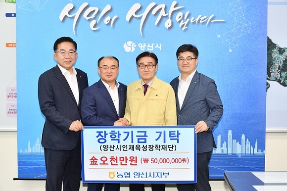 특히 농협 양산시지부는 지역 인재육성을 위해 2007년부터 꾸준히 기탁해 현재까지 19억 5천만원을 기탁함으로써 양산시의 발전과 함께하는 행보를 이어오고 있다.