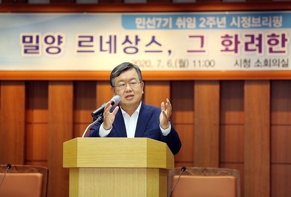 민선7기 지난 2년 주요 성과로는 ▲나노융합국가산업단지 착공 ▲나노융합연구단지 준공 ▲나노그린타운 지구지정 및 고시 ▲하남일반산업단지 준공 ▲밀양상생형 일자리 협약 체결 ▲ 한국나노마이스터고 개교 ▲ 한국폴리텍대학 밀양캠퍼스 설립 재개 등 나노융합산업에 가시적 성과를 내고, ▲국립기상과학관, 밀양아리랑우주천문대 동시 개관 ▲밀양아리랑대축제 대한민국 대표축제 선정 ▲내일·내이·가곡동 도시재생뉴딜사업 선정 추진 ▲농어촌관광휴양단지 본격 추진 등 굵직한 대형 프로젝트 사업을 통해 문화관광 도시로의 기반을 견고히 다졌다.