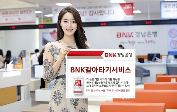 디지털금융본부 최우형 그룹장은 “BNK갈아타기서비스는 BNK경남은행모바일뱅킹앱과 영업점을 연계한 대출서비스다. 서류 준비 없이 공인인증서만 있으면 누구나 타 은행 고금리대출을 BNK경남은행의 저금리대출로 전환해 가계 부담을 덜 수 있을 것이다”고 말했다.