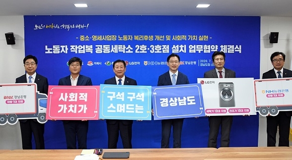 경남도는 16일 도청 소회의실에서 '노동자 작업복 공동세탁소' 2호점과 3호점 설치를 위한 업무협약을 체결했다.