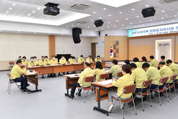 시는 16일 시청 대회의실에서 코로나19 극복 희망일자리사업 추진계획 보고회를 개최했다. 이날 보고회는 사업 시행에 앞서 주요사업 17개 부서장 및 13개 읍면동장이 참석해 추진계획을 사전 점검하고 문제점과 대책을 강구하기 위해 마련됐다.