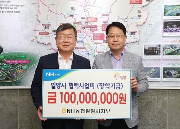 농협은행은 지난해부터 매년 1억원씩 3년간 총 3억원의 협력사업비를 (재)밀양시민장학재단 장학기금으로 출연하고 있으며, 출연한 장학기금은 지역 명문학교 육성 및 지역 인재육성에 사용된다.