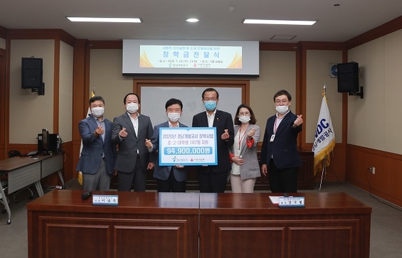 경남개발공사는 22일 공사 3층 상황실에서 2020년도 경남개발공사 장학금 전달식을 가졌다.
