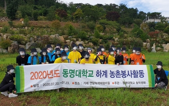 동명대학교 총학생회는 올해 농촌 봉사활동(1·2·3차)을 코로나19 안전수칙을 철저히 준수하는 가운데 지난 20일부터 8월 21일까지 세 차례에 걸쳐 경남 거제시 연담 녹색농촌체험 마을 일대에서 펼친다.