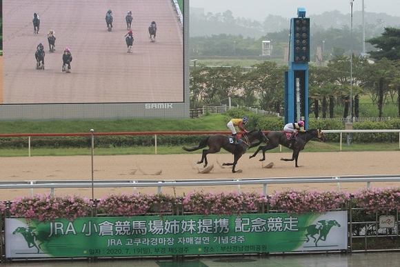 한국마사회 렛츠런파크 부산경남이 지난 19일 JRA(일본중앙경마회) 고쿠라경마장과의 자매결연을 기념하는 경주를 개최했다.