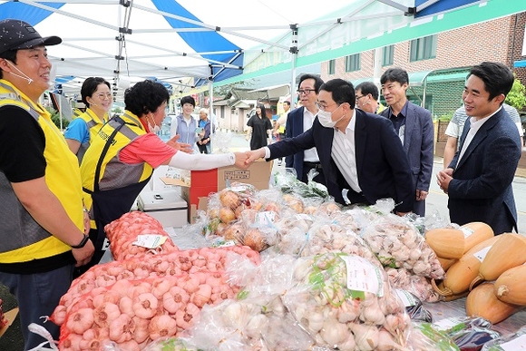 이날 허성무 창원시장은 지역구 시의원 등과 장터를 방문해 주말 직거래장터 현장을 점검했다.