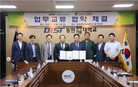 동명대학교는 지난 27일 동원과학기술대학교 2층 회의실에서 동원과기대와 업무교류 협약체결 및 LINC+산학협력 멘토링을 가졌다.