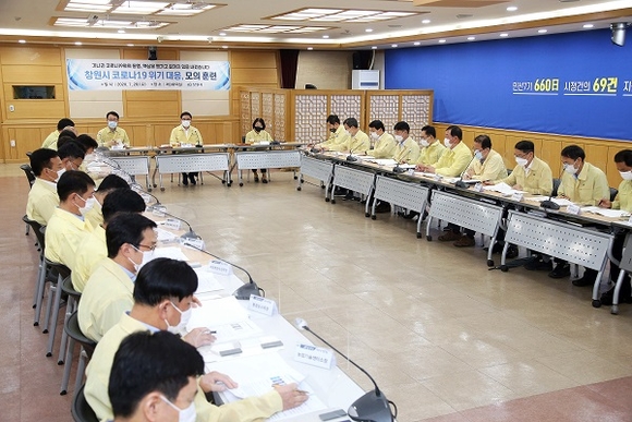 경남 창원시는 29일 코로나19의 장기화 및 재유행에 선제적으로 대비하기 위해 전부서와 '코로나19 위기대응, 모의훈련'을 실시했다.