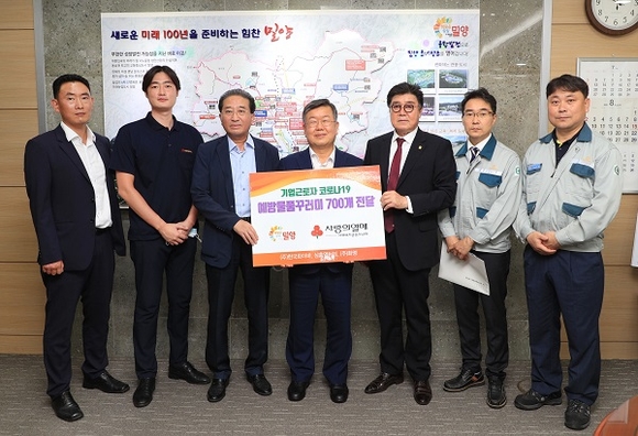 경남 밀양시는 6일 코로나19 여파로 힘든 관내 기업 근로자에게 '코로나19 예방물품 꾸러미'를 제작해 전달했다.