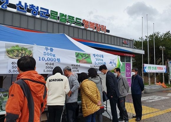 경남 산청군과 산청군농협이 우수한 신선 농산물을 저렴하게 판매하는 '상생협력 로컬푸드 직거래장터'를 연중 운영한다.