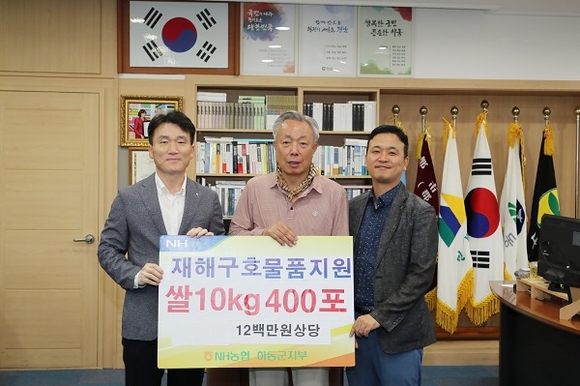 NH농협 하동군지부는 11일 하동군청을 찾아 집중호우 수재민 긴급구호물품 1200만원 상당의 10kg 쌀 400포를 기부했다.