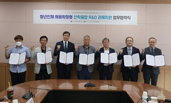 이날 업무협약식에는 산학융합원장, 경상대·창원대 산학협력단장, 참여기업 4개사 등이 참석해 청년인재 채용확정형 산학융합R&D 과제의 성공적 추진을 위해 상호 협업 네트워크를 구축하기로 했다.