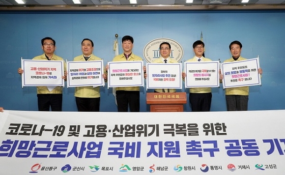 매년 시행하는 △지역공동체일자리사업(15사업 92명) △공공근로사업(241사업 700명)은 포함하여 코로나19 극복을 위한 상반기 △코로나19 실직자 단기일자리사업(125사업 240명)을 시행하고 하반기 △코로나19 극복 희망일자리사업(439사업 3170명) 본격 시행을 앞두고 있으며, 올해를 뜨겁게 달군 지역사회 위기를 극복하기 위해 지난 10일부터 시행하고 있는 △조선업 무급휴직자를 위한 그린일자리사업(106명) 등 끊임없이 공공일자리를 만들어 민생경제 안정을 위해 힘써왔다.