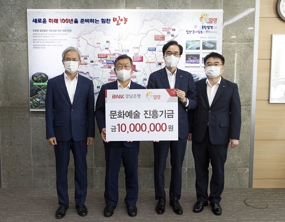 밀양문화재단은 NH농협은행 밀양시지부와 경남은행 밀양지점에서 19일 지역문화예술진흥을 위한 지정기탁금을 전달해왔다고 밝혔다.