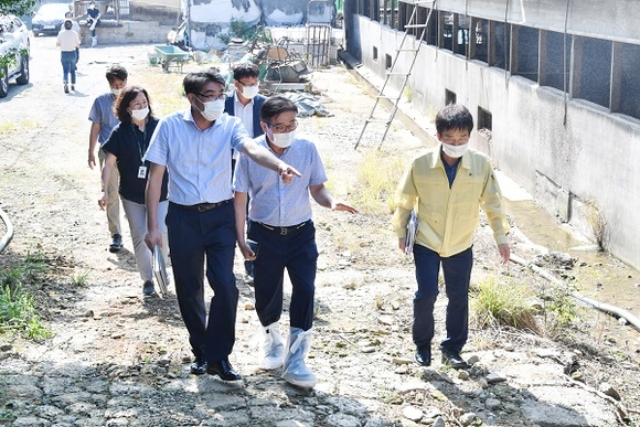 경남 양산시가 최근 덕계동 두산위브아파트 등 악취민원의 여러 요인 중 하나로 지적되고 있는 축사를 방문, 민원해결을 위해 현장에 직접 나섰다.