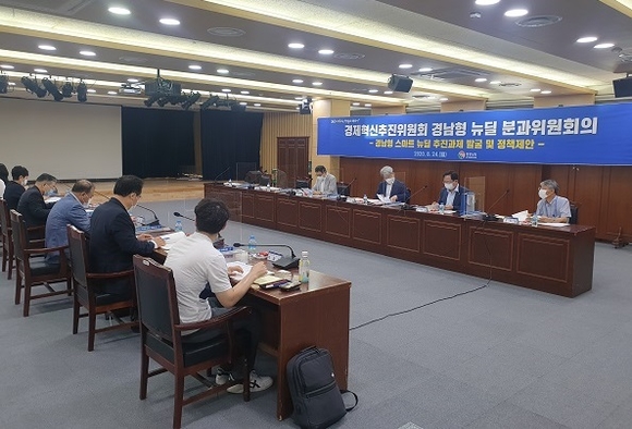 '경남 경제혁신추진위원회'는 24일 도청 중회의실에서 '경남형 뉴딜분과'와 '지식 서비스분과' 회의를 각각 개최했다. 지난 18일 '디지털혁신분과 회의'에 이은 것이다.