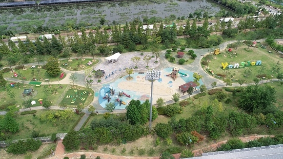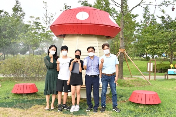 경남 양산시가 동면 금산리에 있는 수질정화공원에 초등학생이 그린 벤치를 실물로 제작·설치한 '의자공원'을 완공하고 지난 21일 제막식을 가졌다.