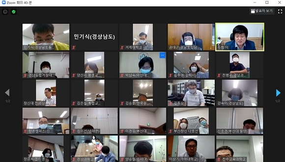 비대면 영상회의로 통합교육추진단장이 주재하여 진행한 이번 회의에는 경남도와 26개 대학 및 대학 관련 시·군 관계자 39명이 참석했다.