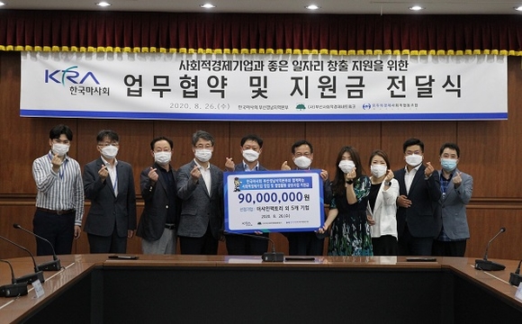 한국마사회 부산경남지역본부는 부산사회적경제네트워크와 모두의경제사회적협동조합에서 주관하는 '사회적경제기업 지원 공모사업'을 통해 선정된 (예비)사회적경제기업에 총 9천만원의 후원금을 전달했다고 28일 밝혔다.
