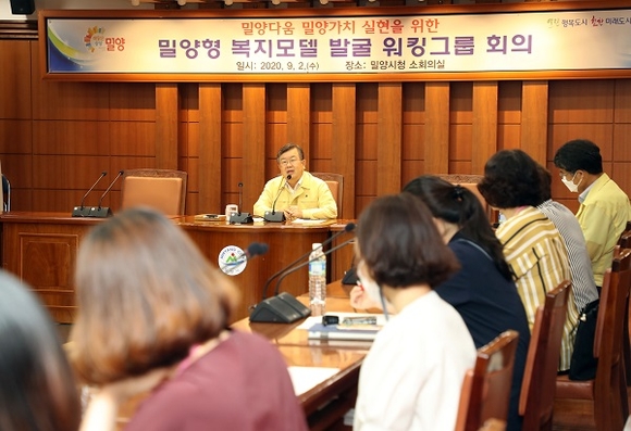경남 밀양시는 2일 시청 소회의실에서 박일호 시장과 공무원 등 26명이 참석한 가운데 밀양형 복지모델 발굴 워킹그룹 첫 회의를 가졌다.