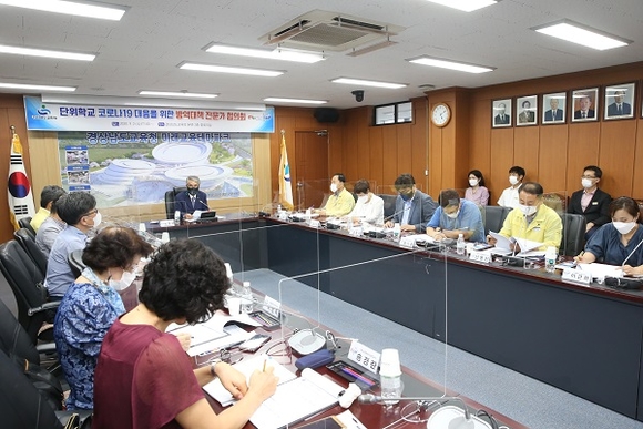 경남도교육청은 2일 2청사 중회의실에서 최근 재확산 위기를 맞고 있는 코로나19로부터 학교 내 감염을 예방하기 위해 박종훈 교육감을 비롯해 의학계 관계 전문가, 경남도 관계자, 보건교사 등이 참여하는 '학교 방역대책 전문가 협의회'를 개최했다.