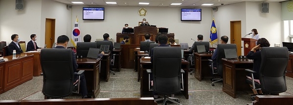 이번 임시회는 정부의 사회적 거리두기 2단계 격상으로 실내 50인 이상 집합금지 명령에 따라 실국장 이상 간부 공무원만 참석하게 하였고, 본회의 참석자들의 경우 마스크 착용과 체온 이상 여부 등의 확인 절차를 거쳐 본회의장에 입장하도록 했다.