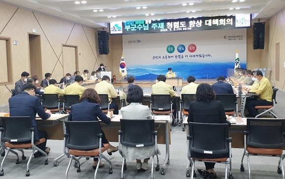 경남 함양군 종합청렴대책본부는 2일 군청 대회의실에서 전 부서장이 참석한 가운데 청렴도 향상 대책회의를 개최했다.
