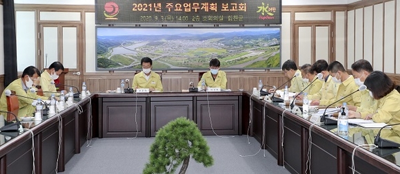 경남 합천군은 3일 문준희 군수 주재로 2021년 주요업무계획 보고회를 갖고, 내년도 군정 업무 운영방향과 2021년 중점추진사업의 업무계획 논의에 들어갔다.