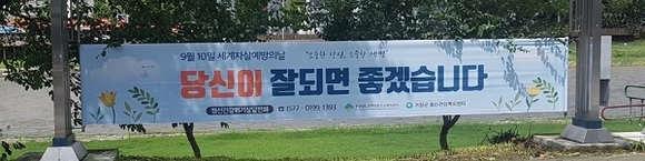 이에 군에서는 지역주민의 이동이 많은 주요 장소에 자살예방 현수막을 게시하고, 관내 재난문자전광판을 활용해 홍보 동영상을 송출하는 등 비대면 홍보활동을 통해 최근 장기화하고 있는 코로나19 감염증과 잇단 장마, 태풍과 같은 자연재난으로 지친 군민들에게 따뜻한 희망의 메시지를 전달할 예정이다.