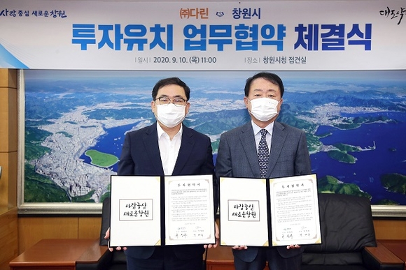경남 창원시는 10일 생활용품, 화장품 등 용기 펌프디스펜서, 스프레이 글로벌 제조기업인 ㈜다린의 제3공장 신설에 대한 투자유치 업무협약을 체결했다고 밝혔다.