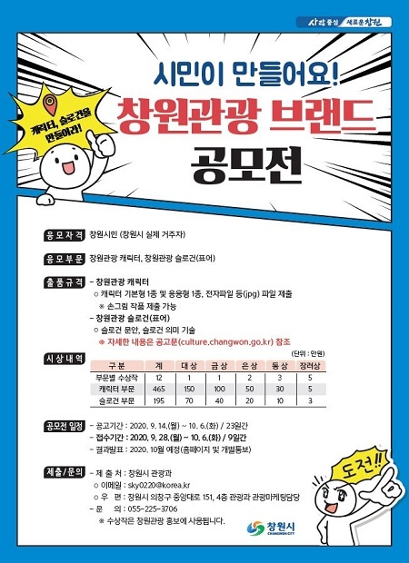 시는 창원관광을 대표할 수 있는 캐릭터와 창원관광의 가치와 비전을 함축적으로 표현할 수 있는 관광 슬로건을 발굴해 향후 홍보·마케팅에 활용할 계획이다.