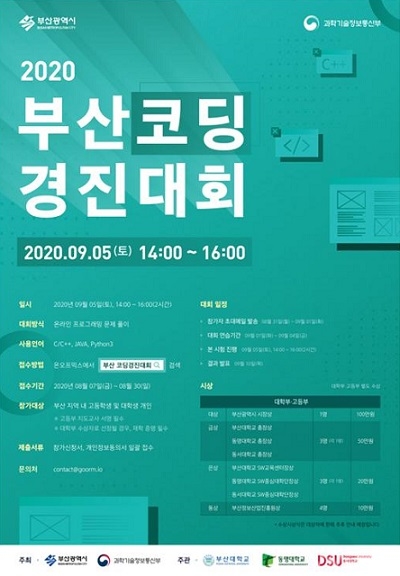 이번 대회는 부산 소재 고등학생 56명과 대학생 116명이 참가 신청했고, 그 중 고등부는 51명, 대학부는 70명이 선의의 경쟁을 벌였다. 이중 문제해결, 알고리즘 설계, 코딩 영역에서 창의적인 문제 해결을 보여준 고등부 11명, 대학부 11명에게 대상(부산시장상), 금상(주관대학총장상), 은상(주관대학사업단장상), 동상(부산SW중심대학협의회장상) 등을 부상과 함께 수여한다.