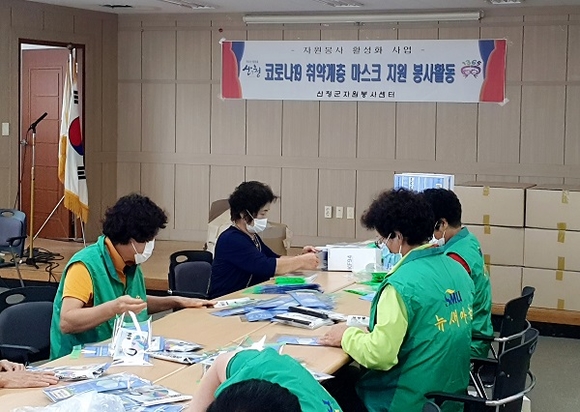 산청군자원봉사센터는 지역 내 65세 이상 노인 모두에게 마스크를 지원했다고 21일 밝혔다.