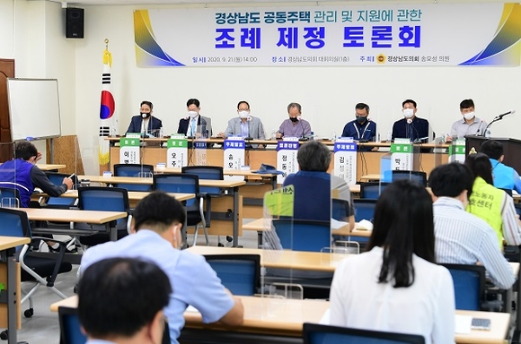 경남도의회 송오성 도의원(더불어민주당)은 21일 도의회 대회의실에서 '경상남도 공동주택 관리 및 지원에 관한 조례 제정 토론회'를 가졌다.