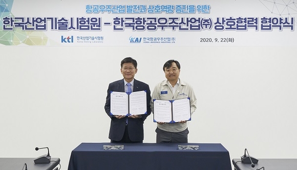 한국항공우주산업(KAI)는 22일 사천 본사 우주센터에서 한국산업기술시험원(KTL)과 국가 항공우주산업 발전을 위한 업무협약을 체결했다.