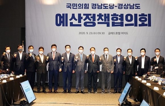 23일 서울 글래도여의도호텔 세미나룸에서 열린 '국민의힘 경남도당-경상남도 예산정책협의회'에는 윤한홍 도당위원장을 비롯해 박대출, 조해진, 윤영석, 박완수, 강기윤, 이달곤, 정점식, 강민국, 서일준, 최형두, 하영제 국회의원 등 국민의힘 경남지역 국회의원 전원이 참석했고, 경남도에서는 김 지사와 하병필 행정부지사, 주요 현안 소관 실·국장들이 함께 자리했다.