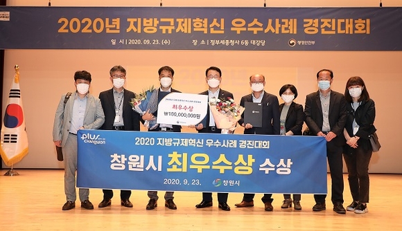 경남 창원시는 행정안전부 주관 '2020년 지방규제혁신 우수사례 경진대회'에서 최우수상을 수상해 장관 표창과 특별교부세 1억원을 받았다고 24일 밝혔다.