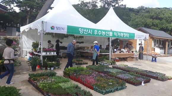 이번 직거래장터는 양산시 분화연구회, 통도마을 농특산물 협동조합 등이 참여해 개산대재 기간인 9월 25일부터 10월 25일까지 30일간 통도사 제1주차장에서 개장한다.