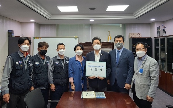 경남도의회 경제환경위원회 소속 송오성 더불어민주당 원내대표와 옥은숙 농해양수산위원장, 문상모 민주당 거제시 지역위원장 및 신상기 민노총 대우조선지회장 등은 '불공정 한국형구축함(KDDX) 사업 재평가 촉구'를 위해 지난 6일 국회를 방문했다.