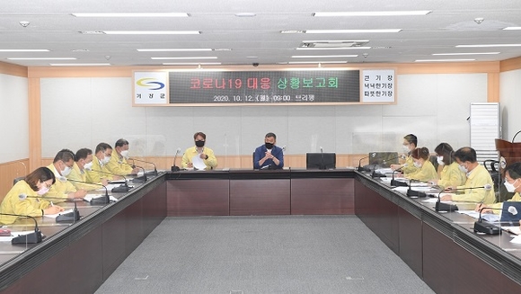 정부가 12일부터 사회적 거리두기를 1단계로 하향조정함에 따라 부산 기장군은 이날 오규석 군수 주재로 부군수, 전 국장, 관련 부서장, 기장군도시관리공단 이사장이 참석하는 코로나19 대책회의를 가졌다.