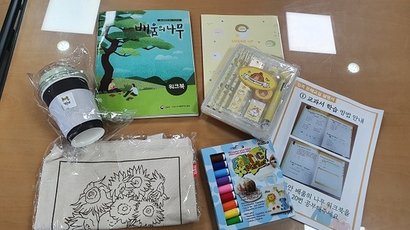이번 프로그램은 김해시 성인문해교실 기존 수강생들의 신청을 받아 60여 명에게 교과서와 필기구, 콩나물 키트, 에코백 등이 들어 있는 키트를 제공, 교육생들이 자기주도적으로 학습을 수행하는 내용이다.