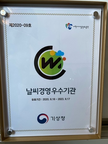 날씨경영 우수기업인증은 기상정보를 활용해 비용절감, 인적‧물적 피해를 예방하는 등 날씨경영활동을 통해 부가가치를 창출하고 기상재해로부터 안전성을 획득한 우수 기관을 인증하는 제도다.